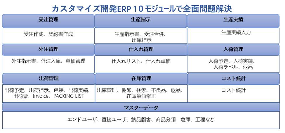 外注加工単価が常に変化し、関連データが適時に正確に更新できない;在庫管理に必要な情報が 不足なので、後続の仕事量が多い;製品のコスト統計に時間がかかる。